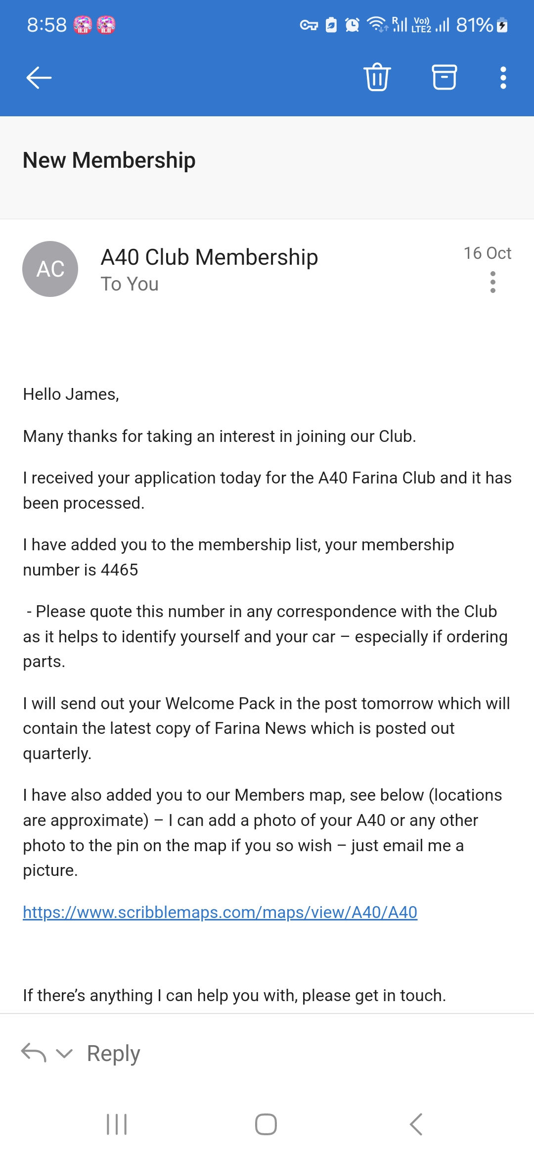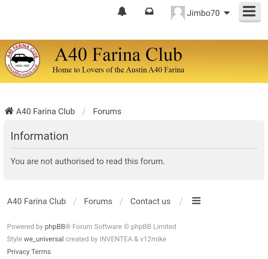 When I click on the Google search result it takes me to the A40 owners club, however it gives a message " not authorised "