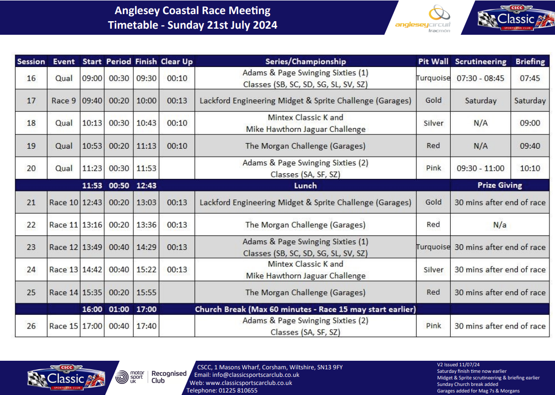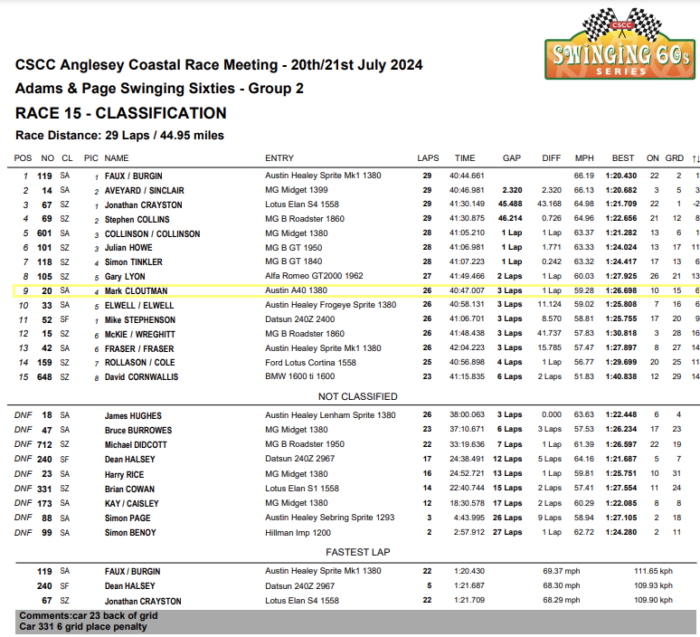 Swinging Sixties, CSCC, will be at Anglesey on Sunday hopefully an A40 or 2.