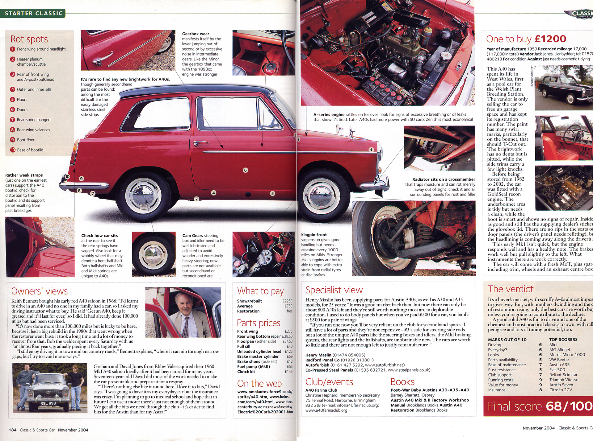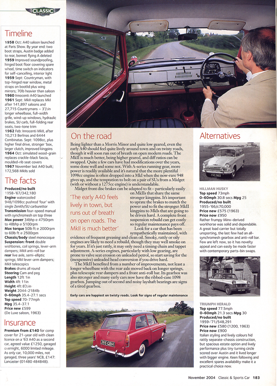 "But why," I queried, "do you think the readers of your magazine will have the slightest interest in a small 'fifties family saloon car?" Answer came there none, until I met up with Malcolm and photographer Tony in a little village near Aylesbury a few days later. And all became clear as Malcolm explained that, although at first glance the content of "Classic and Sports Car" might appear to be 80 per cent eye-wateringly expensive machinery, in fact the mag covers a huge range of classic cars of all years, and that one feature article in each issue is indeed called "Starter Classic". Which is why he needed an A40 Farina in a bit of a hurry, seeing as how that was the model next in the feature list.