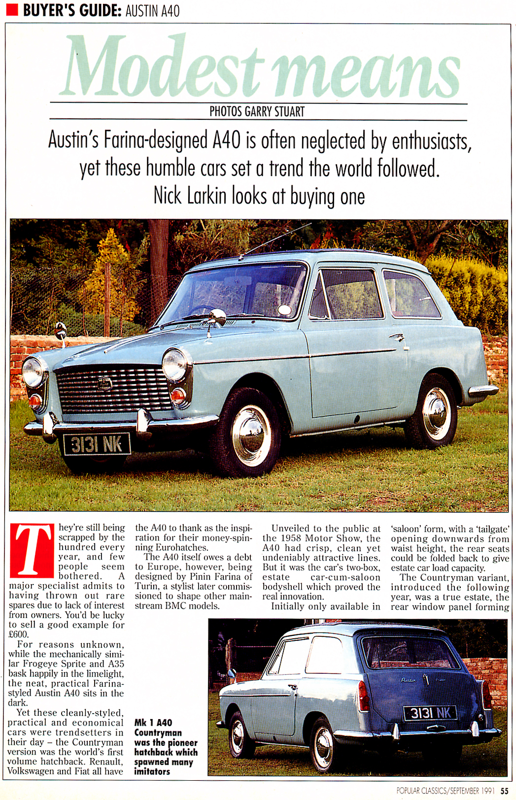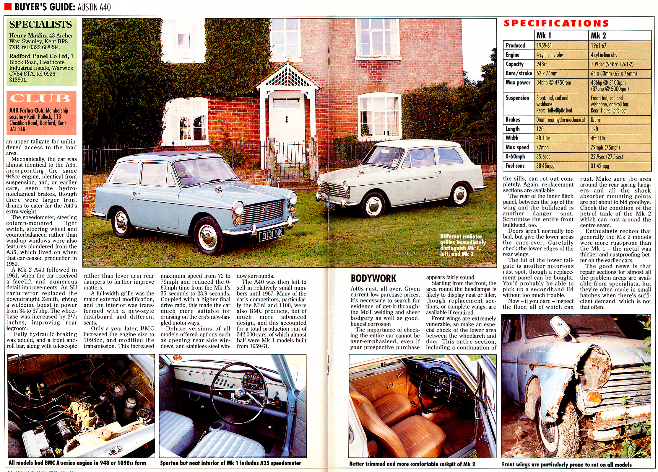 More publicity for "our" cars, this time in another glossy monthly. The photoshoot took place at the home of Anna & Frank Vickerman where one Nick Bayliss did up A40s for sale in one of the barns (see an entry in "out 'n about pics" thread), so the location was naturally convenient for the journalist and photographer.