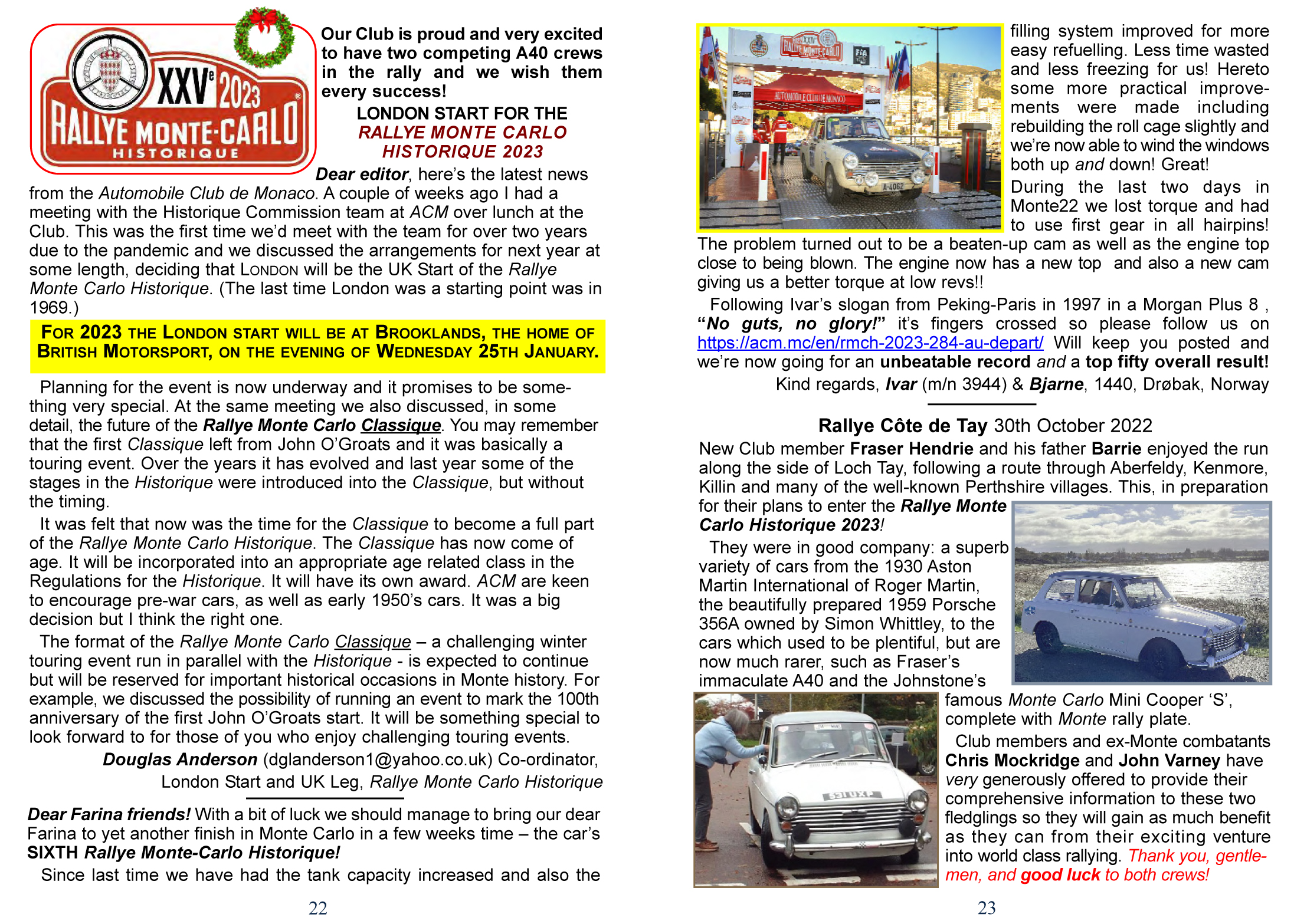 Douglas is part-responsible for the UK start of the 2023 Monte and his letter plus several others from intending entrants appears in FN 171 although postal delays are totally banjaxing getting the proof copy cleared and the magazine into the press. It's gonna be even later than usual.