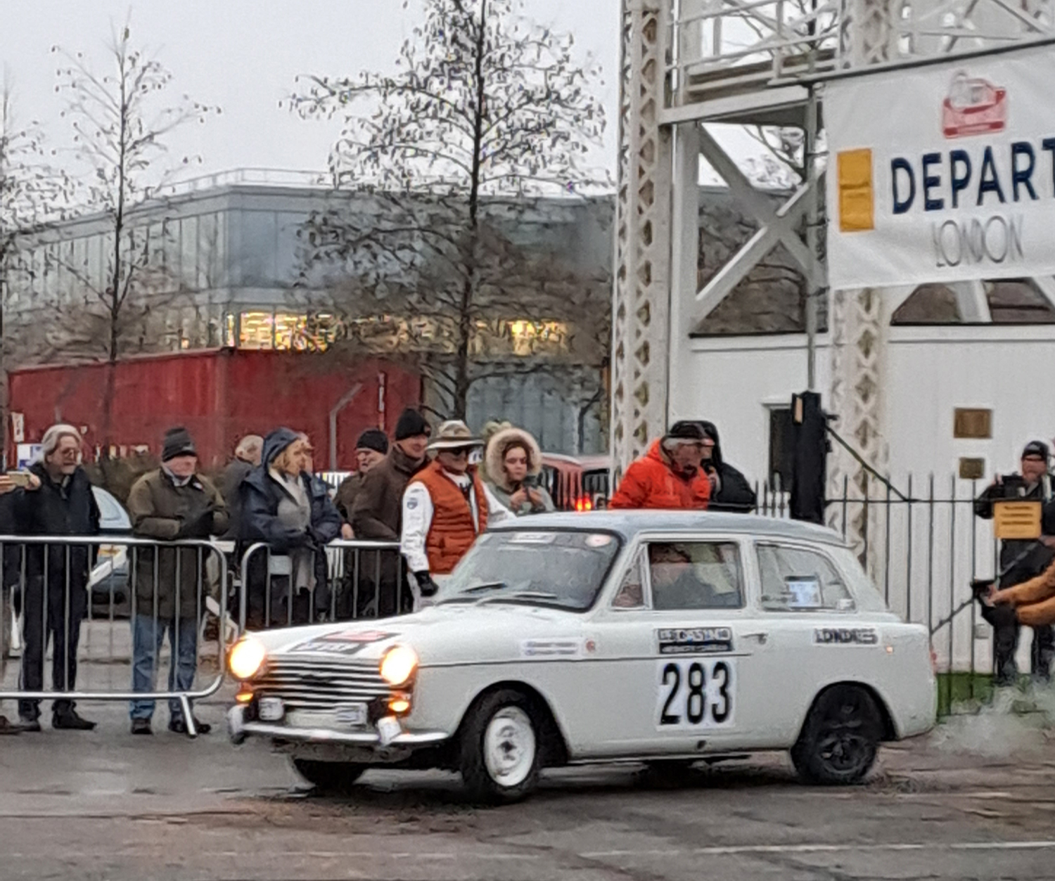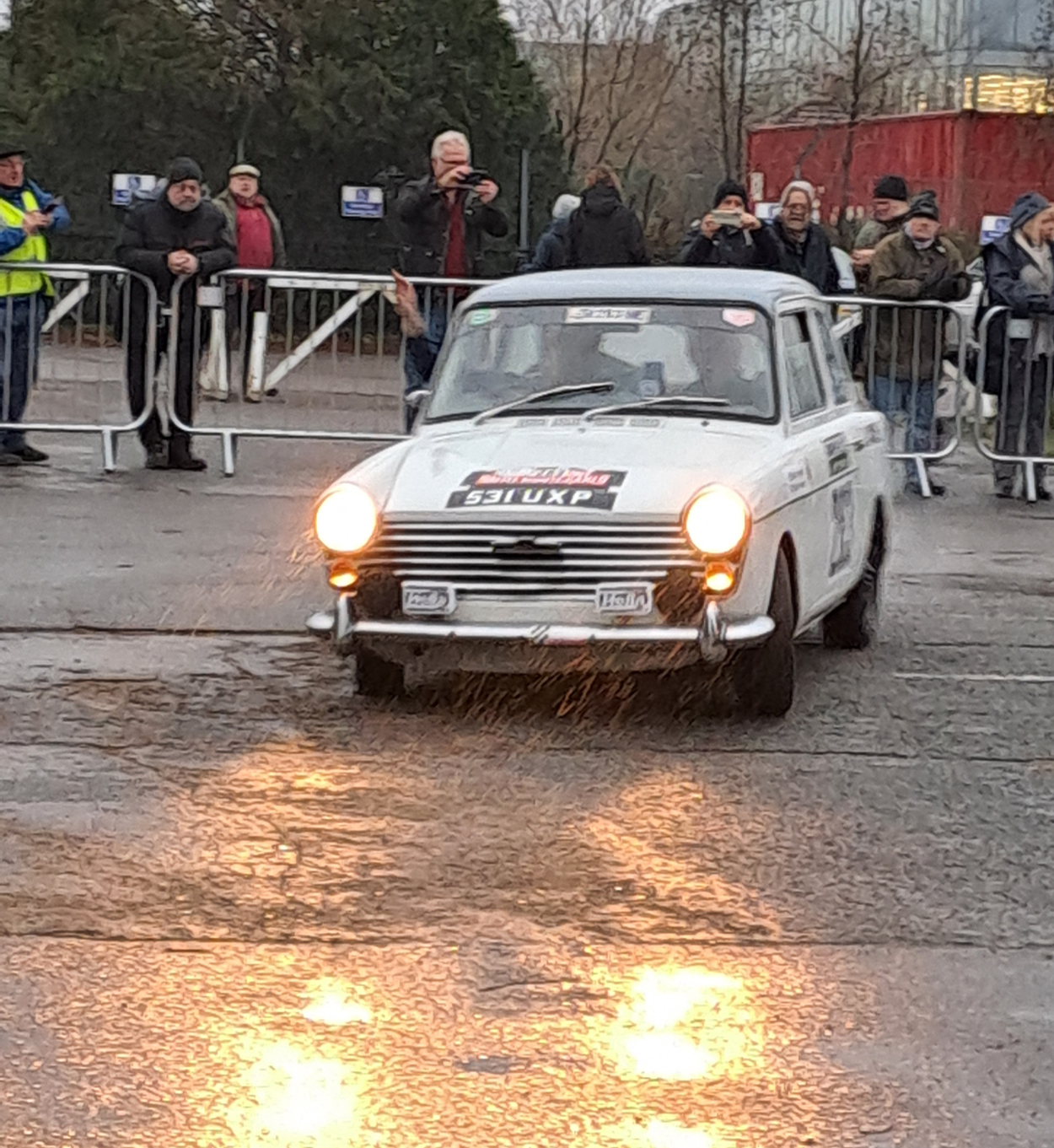 Two photos just arrived from Club member Chris Mockridge and nav John Varney at the start of the rally. Although not entering the Rally themnselves, they have done in the past and their old warhorse obviously scents the excitement! That weather don't bode well for the competitors though...