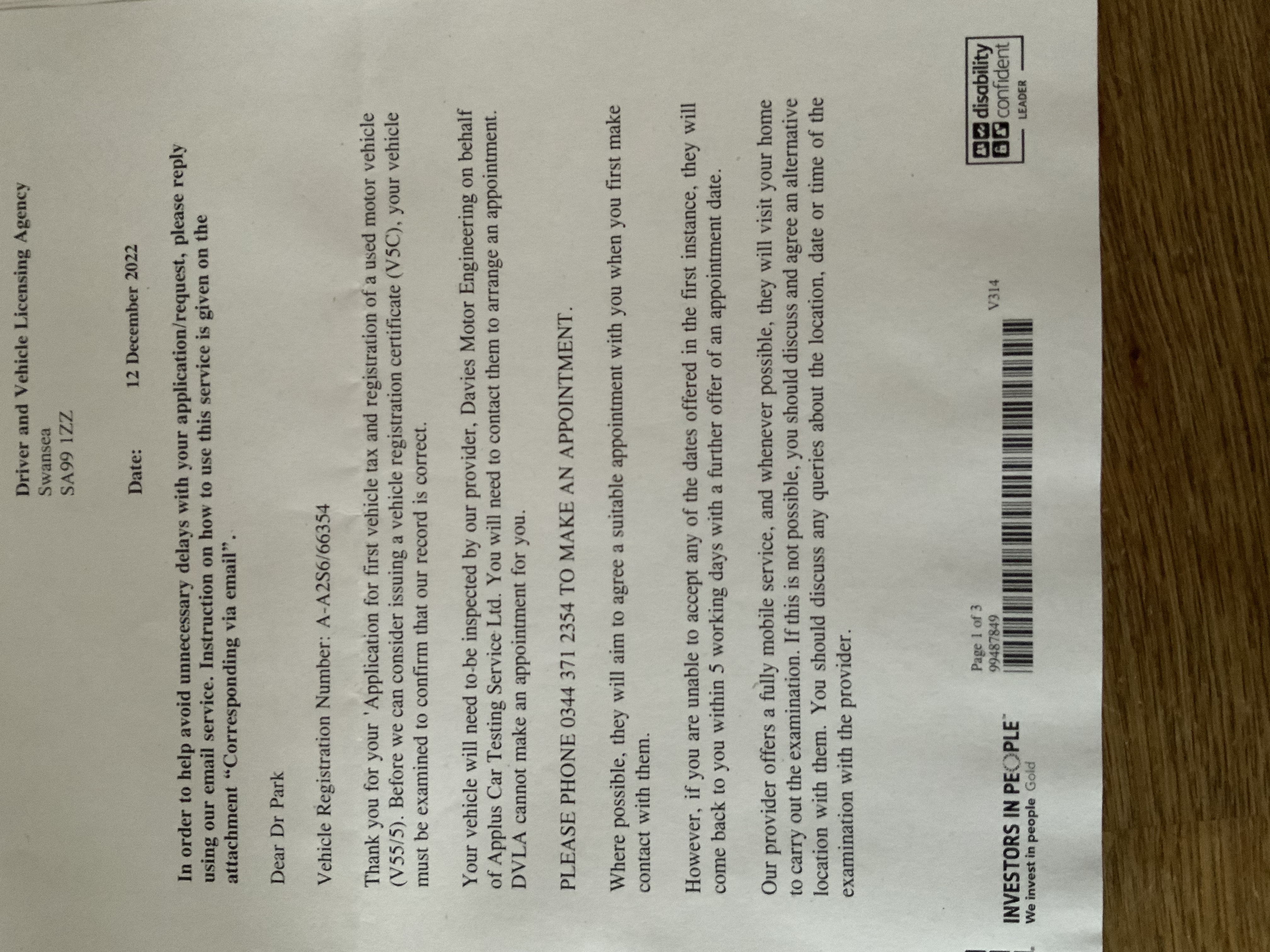 I now have to get the car examined by Davies Motor Engineering on behalf of Applus Car Testing Service Ltd to ‘confirm [their] records are correct. So, it seems having Stoney go to the enormous trouble to kindly examine my car and testify to it’s authenticity, it was all for nought!