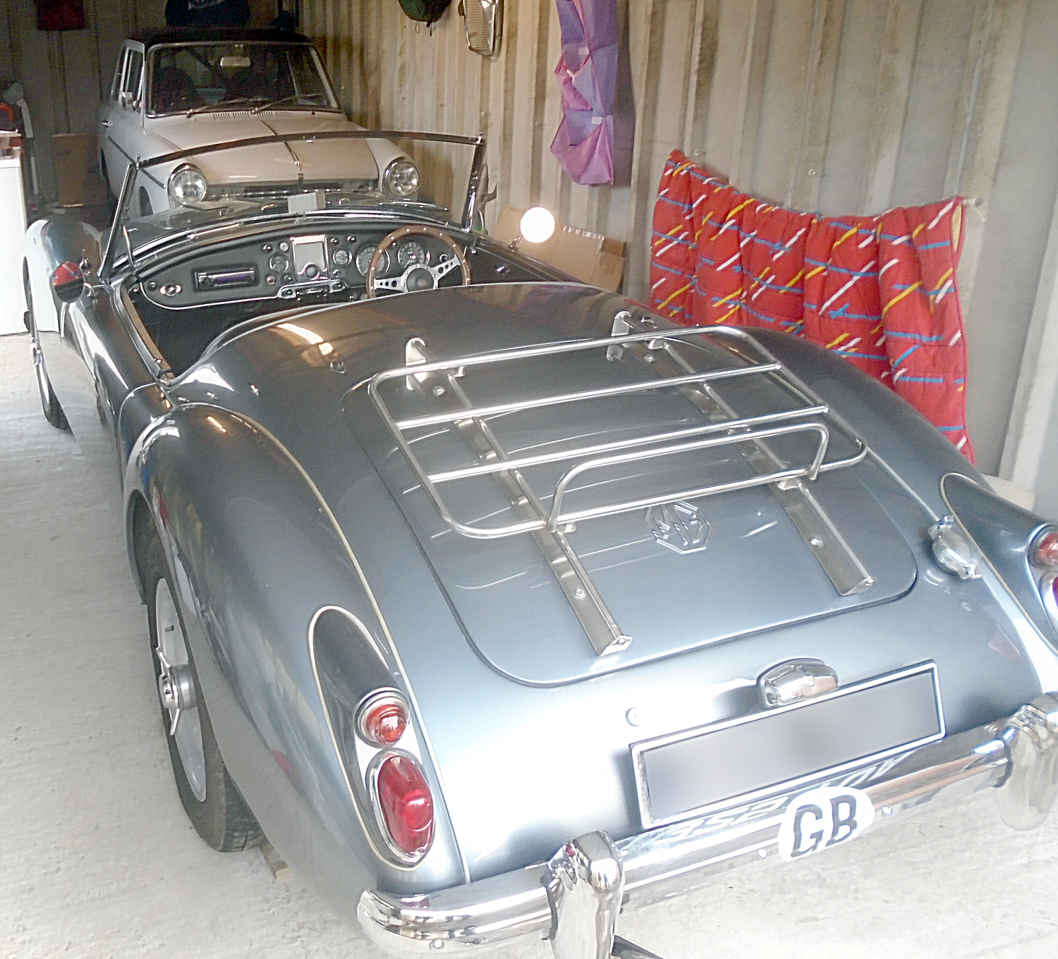 At our Club's stand at last year's Classic Car Show at the NEC, we were all very pleased to meet Bill in person and tempt him into joining our membership. Bill's a very diffident sort of chap and hides his long history of rallying behind a gentle Irish brogue. He very kindly suggested we meet at his home to view his latest acquisition and so it was that Gab and I eventually found ourselves outside an anonymous bungalow on a rural housing estate a million miles from anywhere. With the garage doors opened, there was a sight for sore eyes; the MG-A standing guard over the old girl herself, safely tucked up at the end of the building.