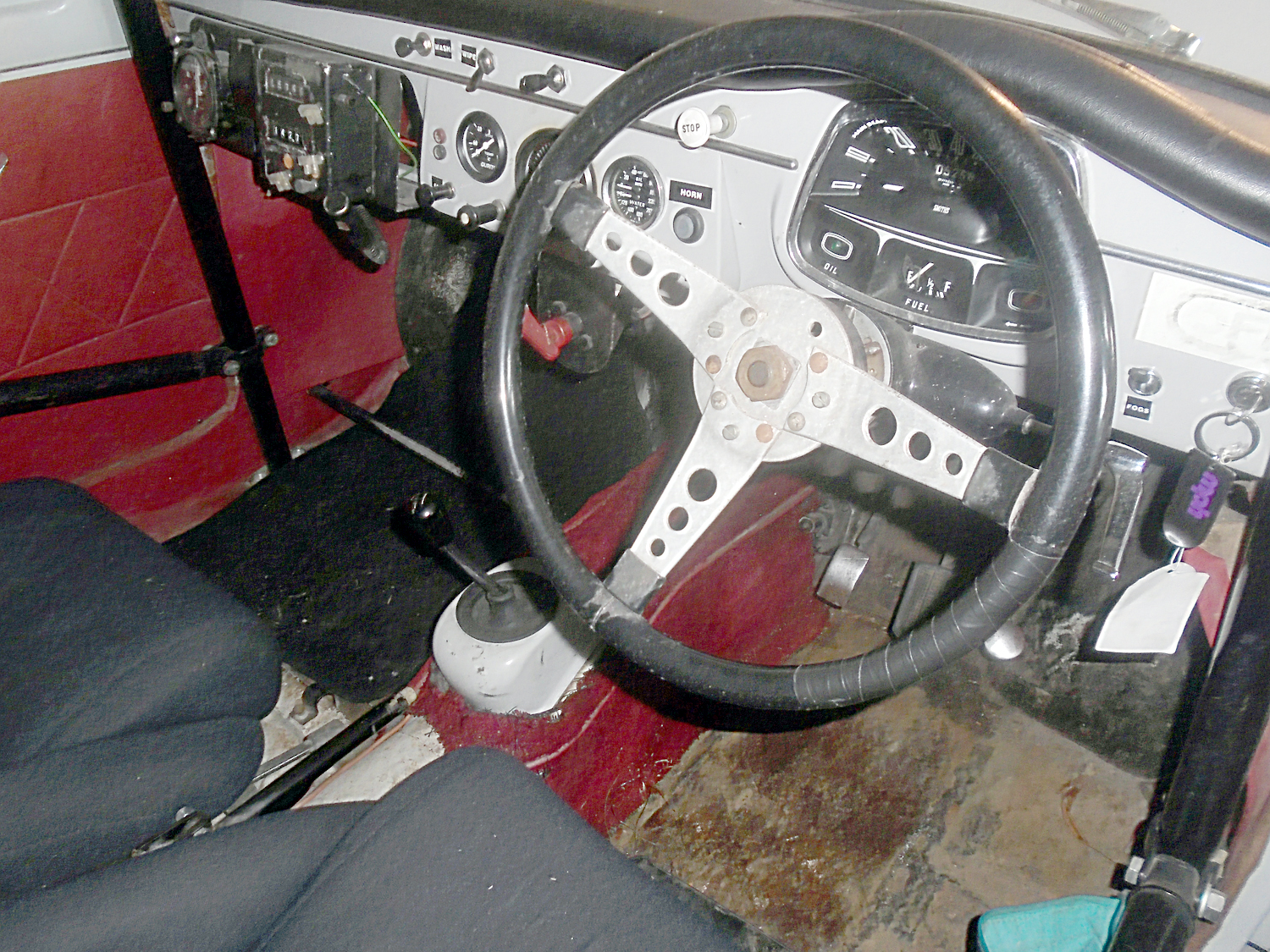 She'd rather suffered over the years and wasn't as original as when she was in her prime. Although roadworthy, a side-exit - and very noisy - exhaust had been fitted which Bill intends replacing asap. The rally instruments have been roughly cut away from their wiring looms and her race engine was removed some time ago, although a straight-cut gearbox is still fitted, but Bill is determined to bring her back to glory.
