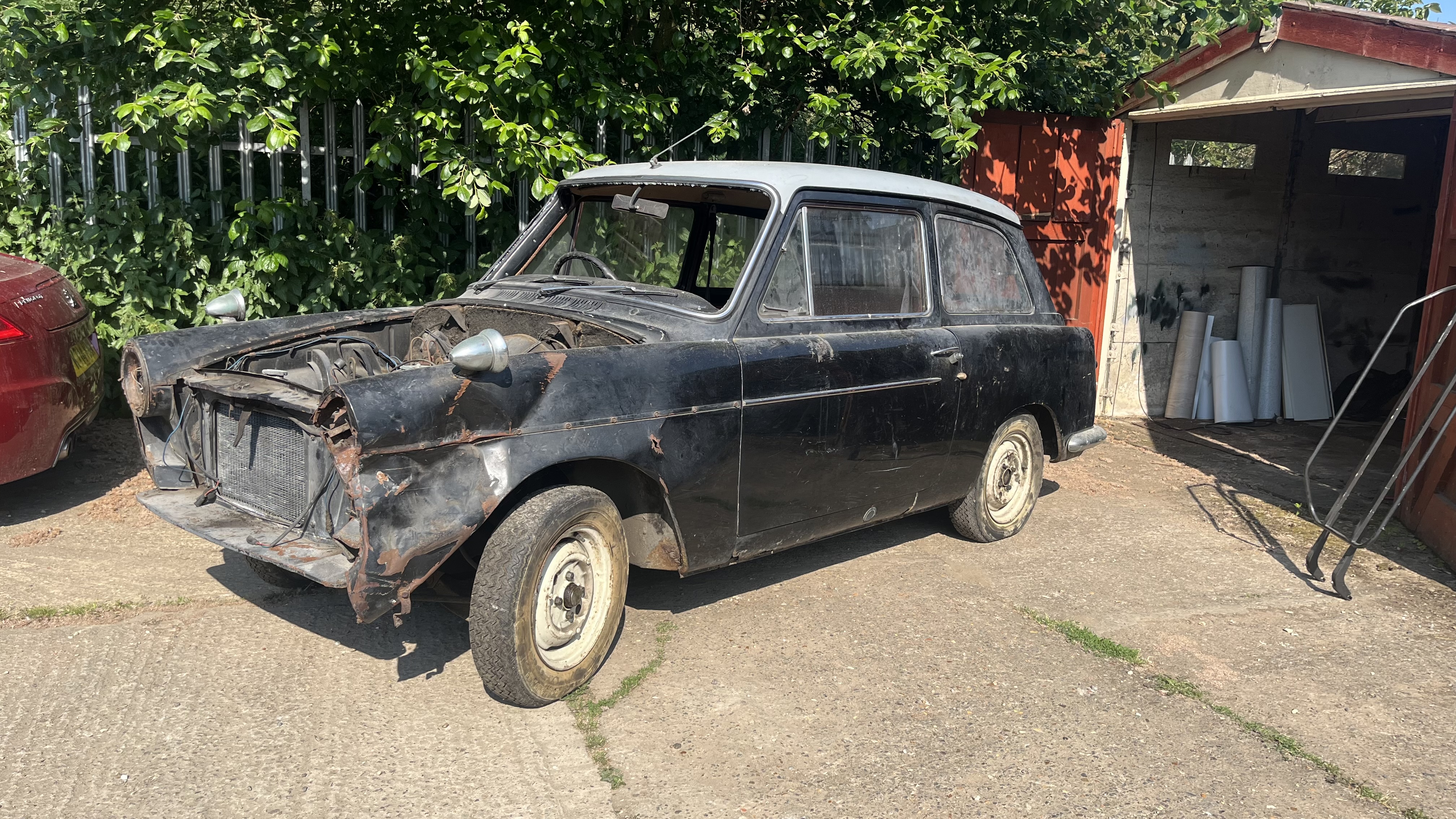 I have acquired my Dads Austin A40 Farina mk2 saloon, she has been tucked in a garage for many many years being untouched after someone crashed into the front side of him years ago (1971 ish) and as far as I was told it bent the chassis in the crash butttt having a brief look I can't see anything. All who would of know more about what happened and could have pointed to the problems have unfortunately passed so I'm going of stories I heard when I was too young to care