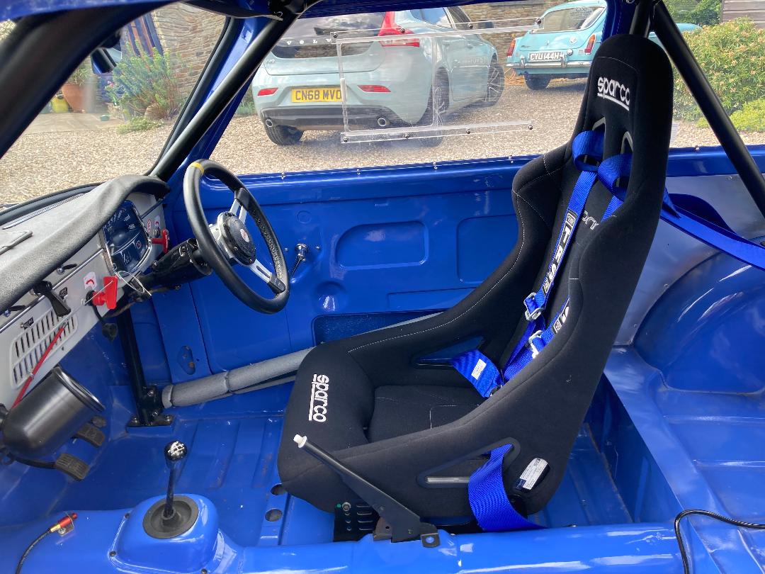 Brief spec: 1293 cc full race motor, (120 bhp at wheels), 45 DCOE weber carb on swan neck manifold, straight cut/ close ratio gearbox, limited slip diff, Salisbury type, competition half shafts, electronic ignition. Correct uprated lever arm shocks both front and rear.