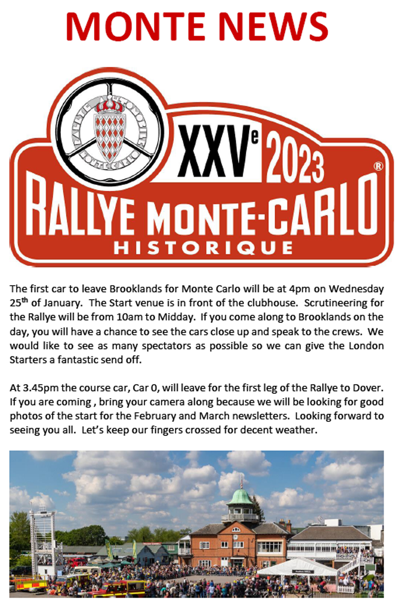 Douglas is part-responsible for the UK start of the 2023 Monte and his letter plus several others from intending entrants appears in FN 171 although postal delays are totally banjaxing getting the proof copy cleared and the magazine into the press. It's gonna be even later than usual.