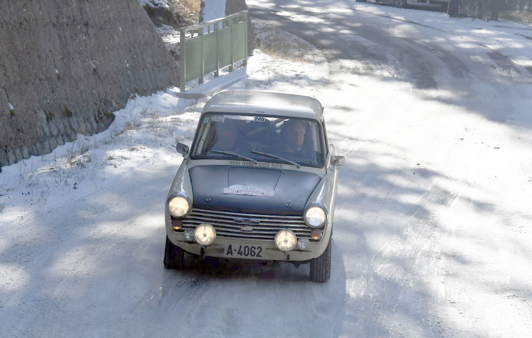 Mechanical issues: our clutch slave cylinder seal sprung a leak on the concentration leg after we climbed the hill out of Saint Andre Les Alpes on the final stage towards Monte Carlo. We managed with the help of a passing support crew to get it bled through enough to reach Monte Carlo. There was then an anxious 12-hour hunt for parts which eventually yielded success with around 20 minutes to spare, thanks to the Auto BMC team who had a compatible mini part. The repair was done in a car park on the way to Valence!